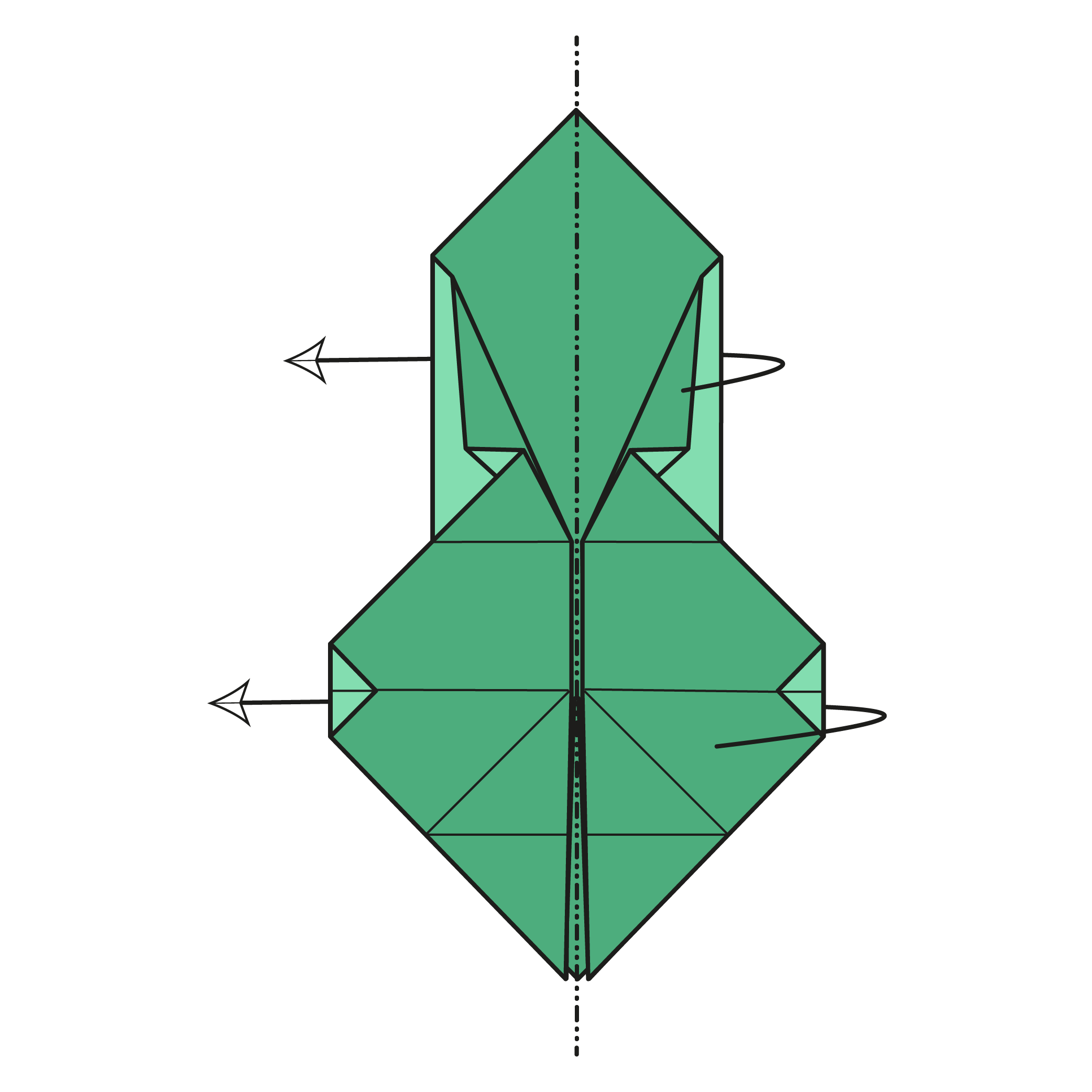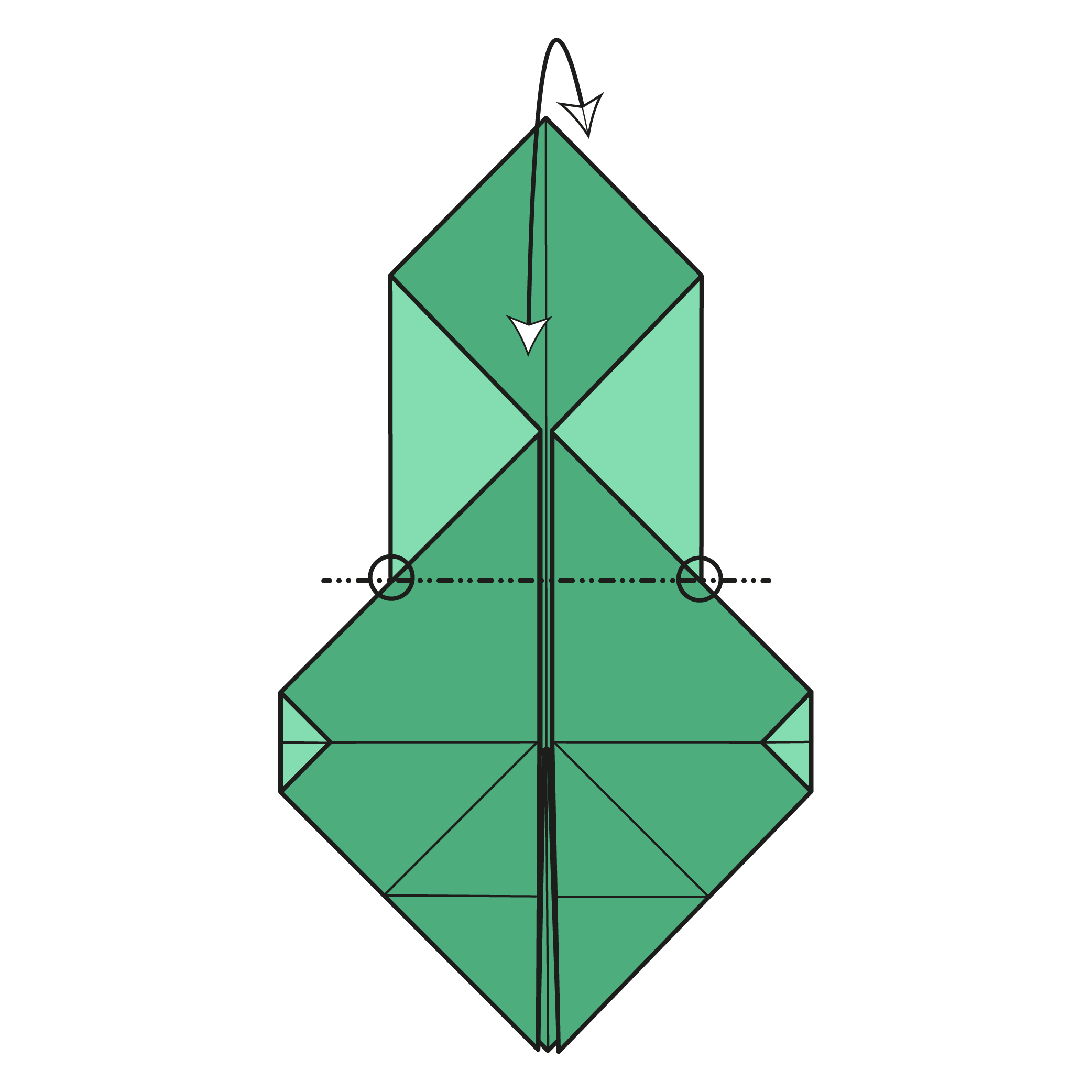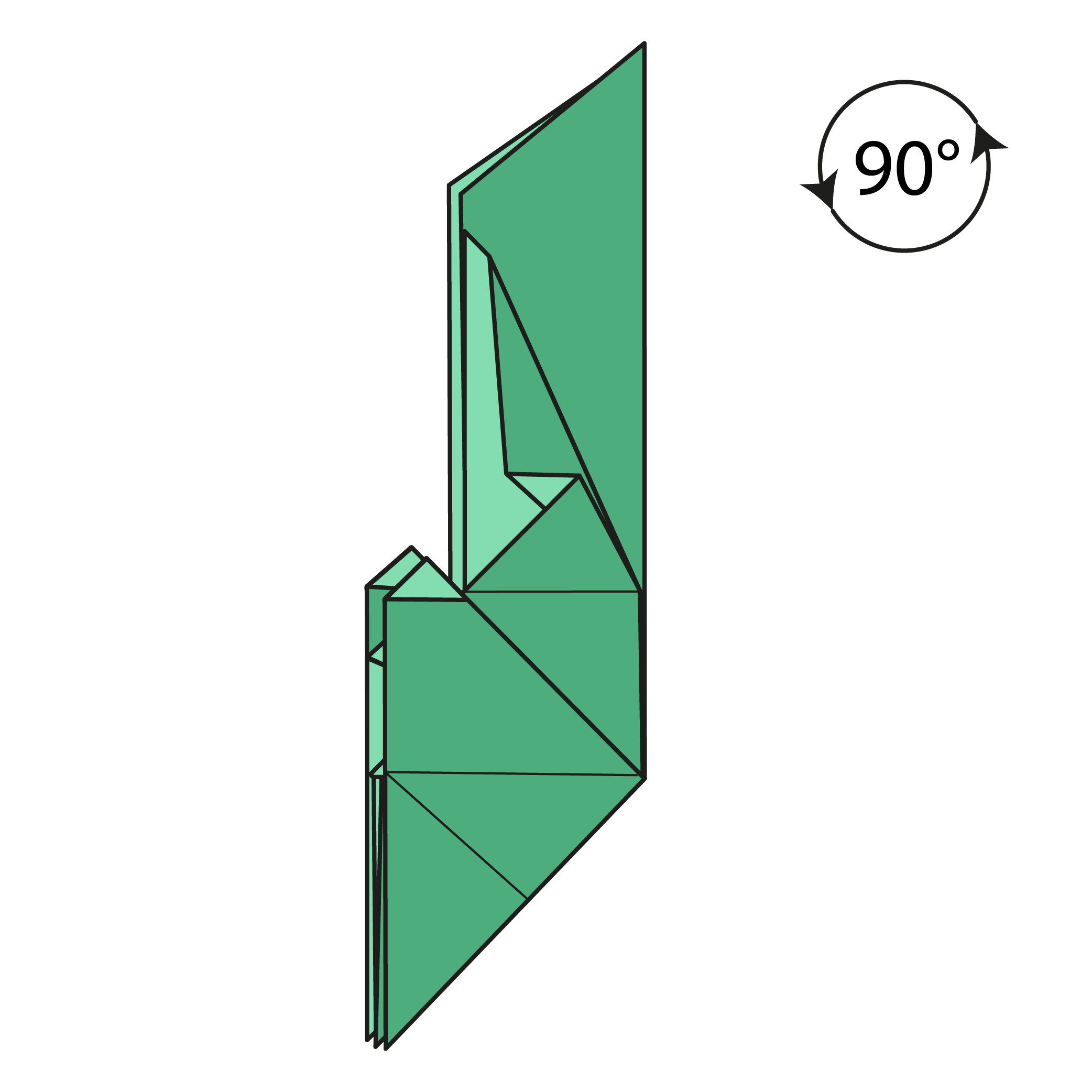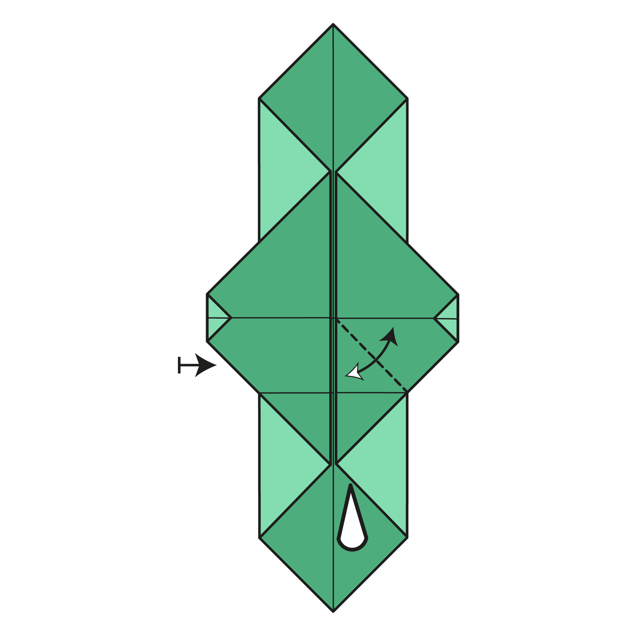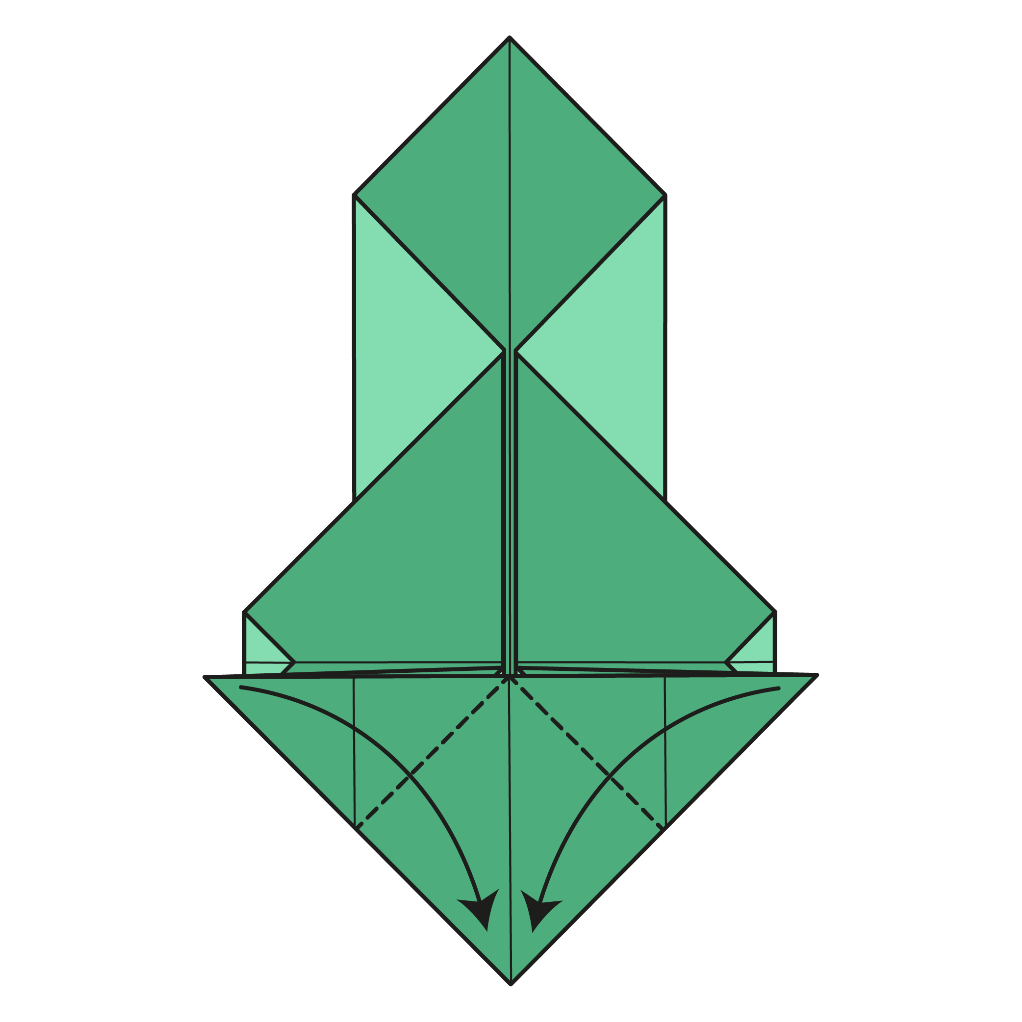 Bring the bottom corner up and fold along the creases from Step 6 to flatten the model.