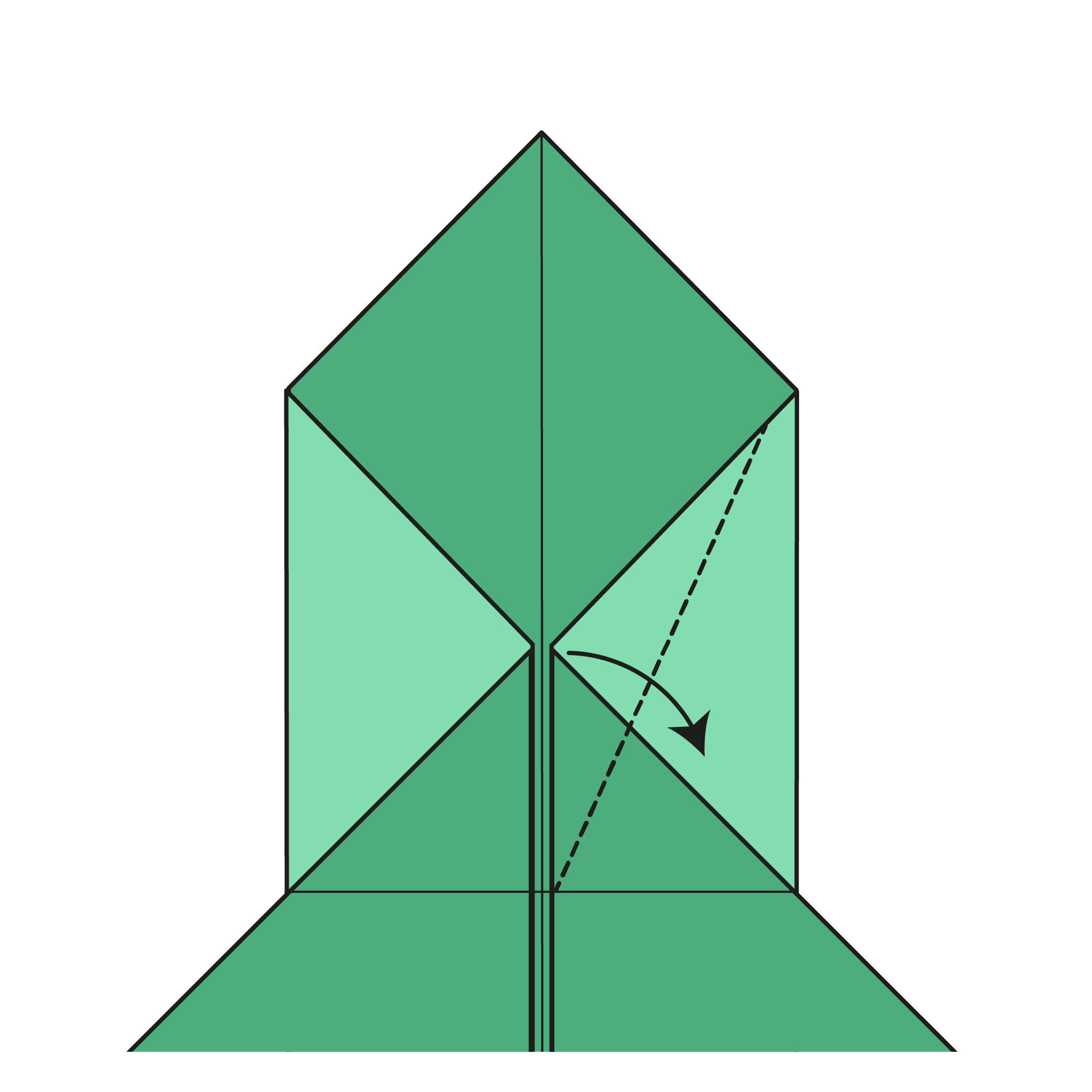 Fold the top flap’s right corner in to meet with the nearest vertical line.