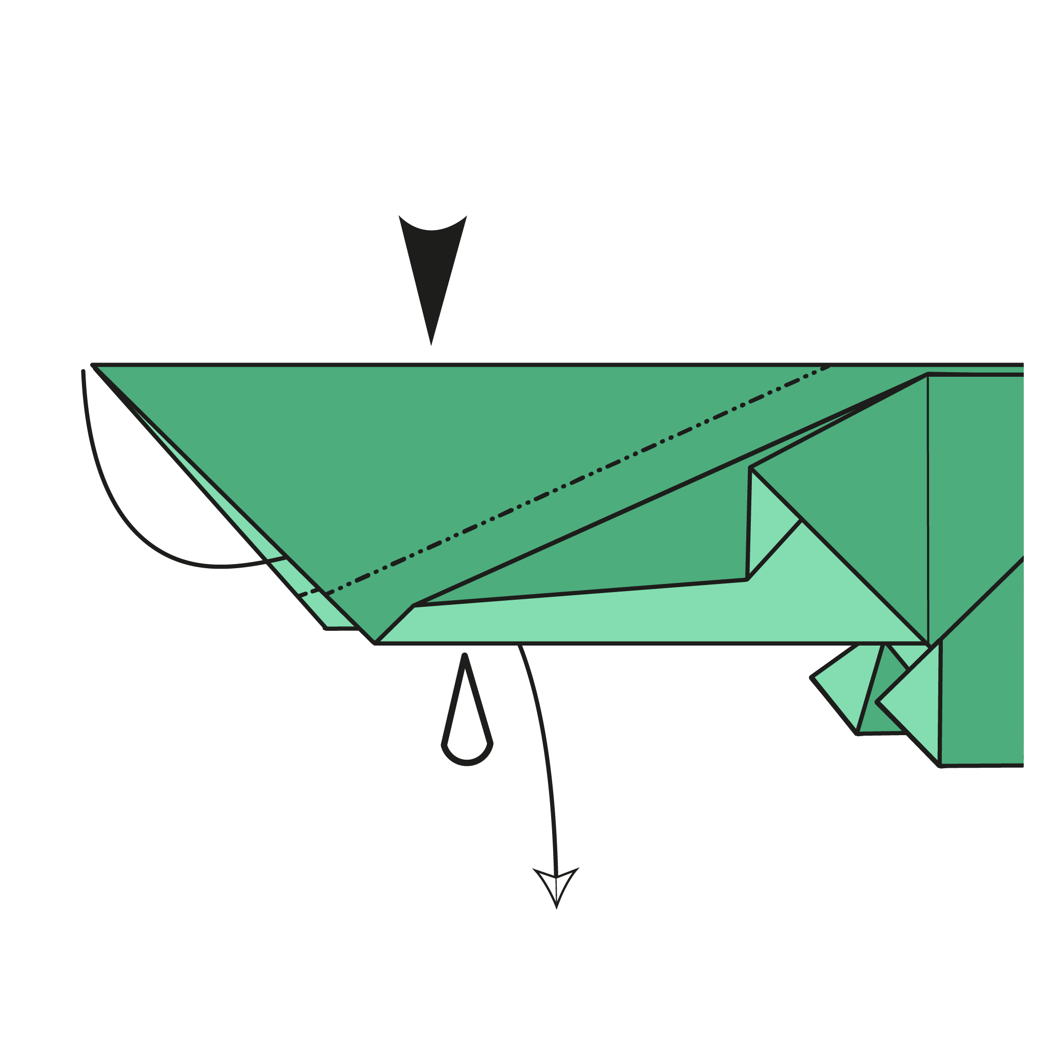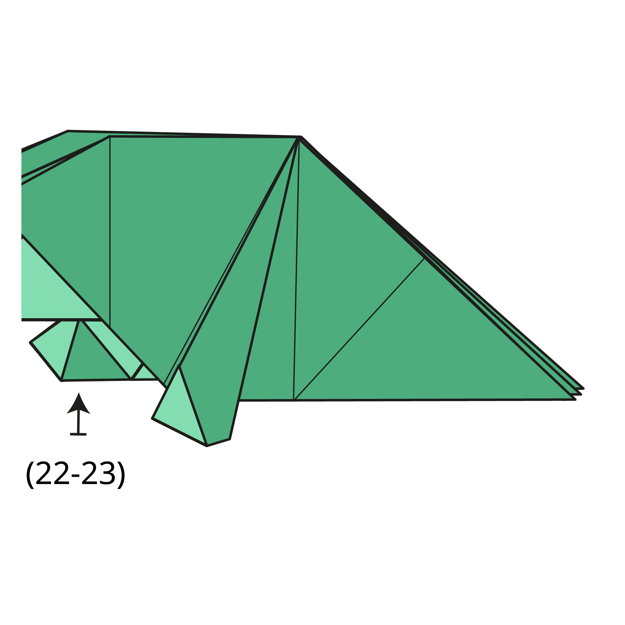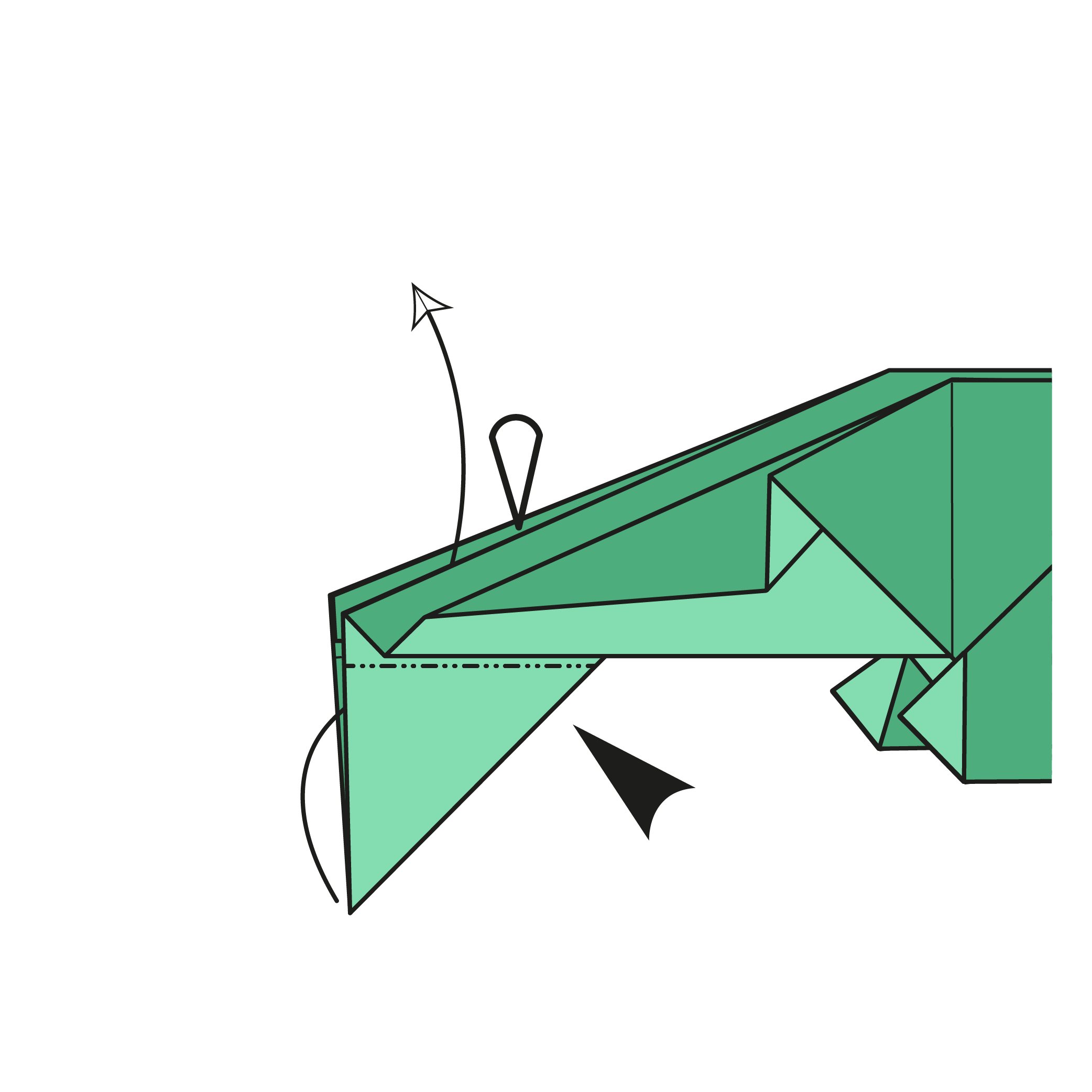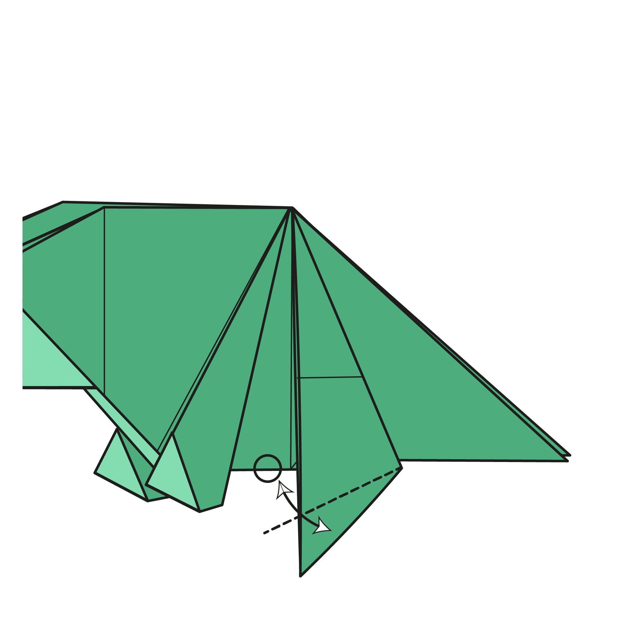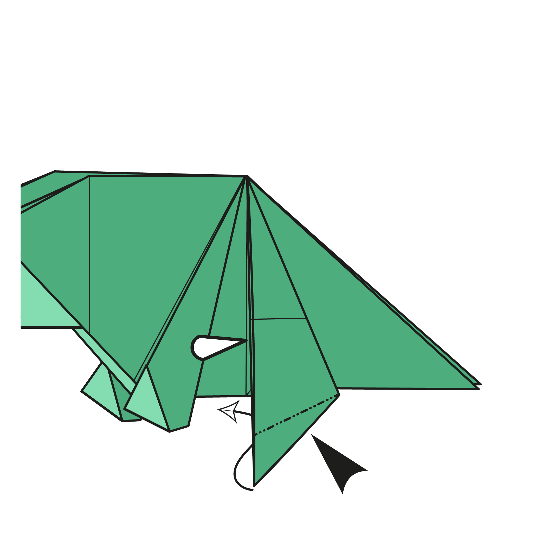 Inside reverse fold the flap from the previous step to shape the crocodile tooth.