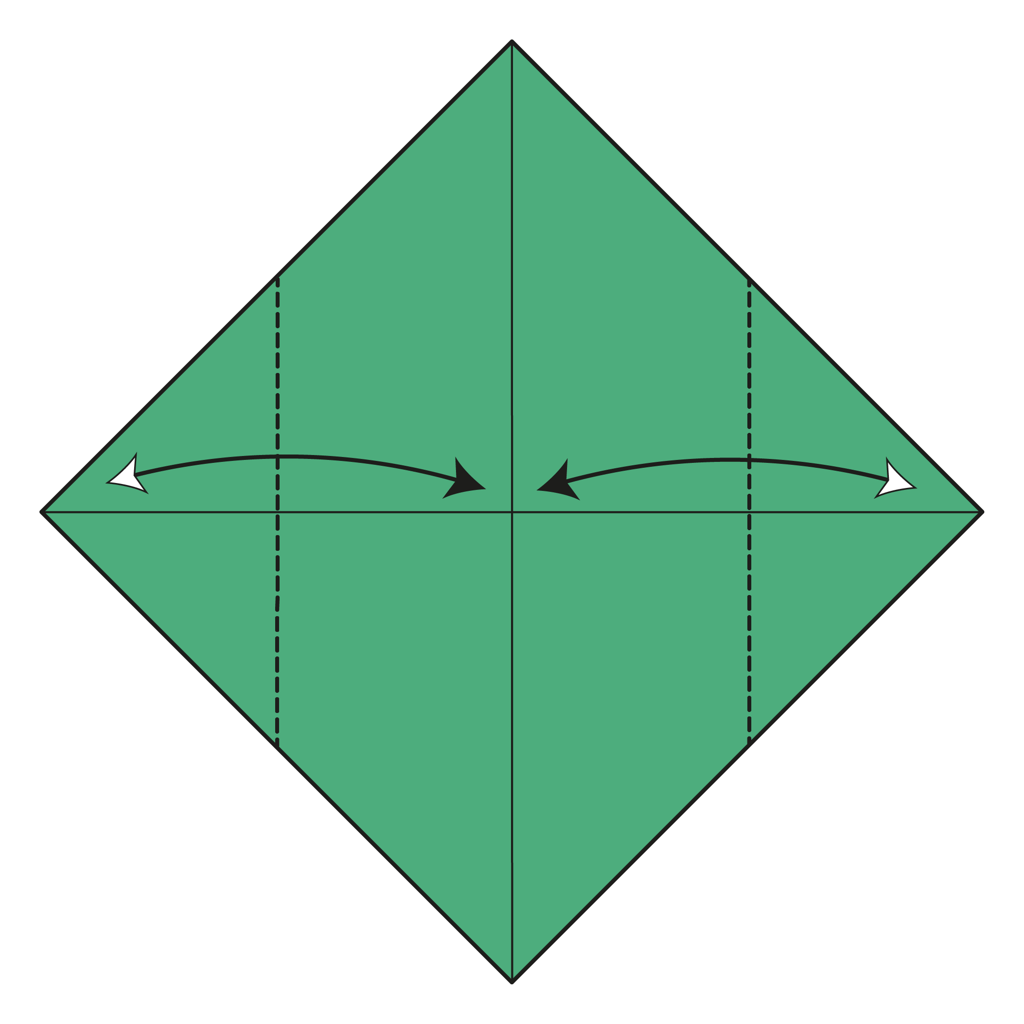 Bring the left corner down and mountain fold along the dotted line. Crease well and unfold.