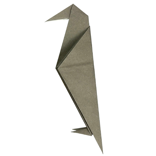 This traditional origami crow is folded from the classic bird base, with just a few simple steps added to shape its beak and feet.