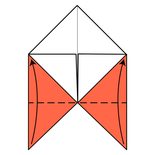 On each side, fold the bottom edge in to meet the vertical centerline.