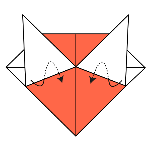 On each side, fold the top flap’s inner edge up to meet the colored edge.
