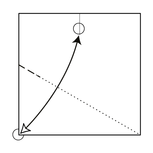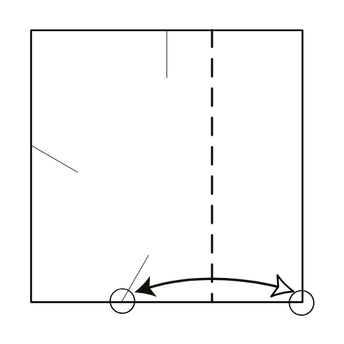 Bring the bottom left corner up to meet that pinch mark. Start the fold from the bottom right corner. Pinch the left edge to mark it, then unfold.