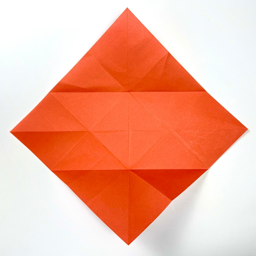 Fold the top edge down to the crease line from Step 7. Then, turn the paper over.