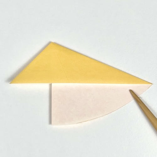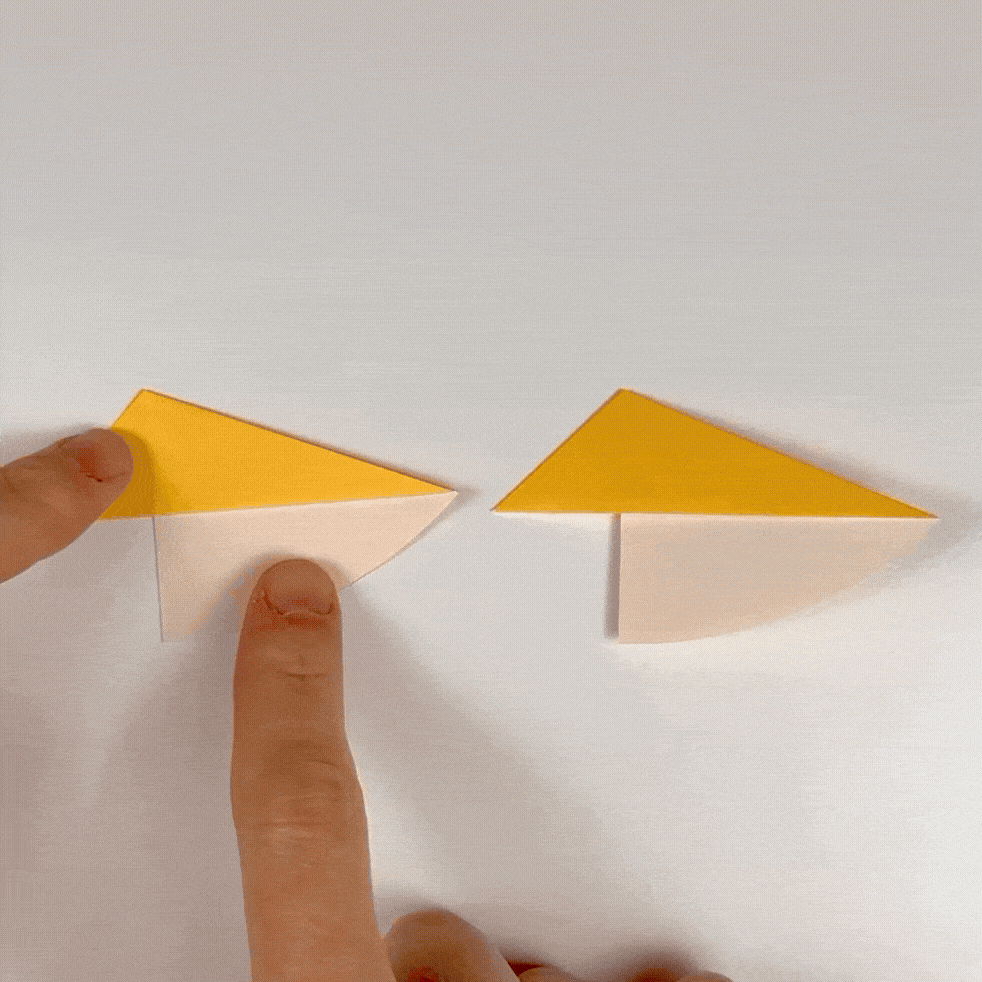 Begin to rabbit-ear fold the corner. Then, fold the left corner behind the right corner and flatten the paper.