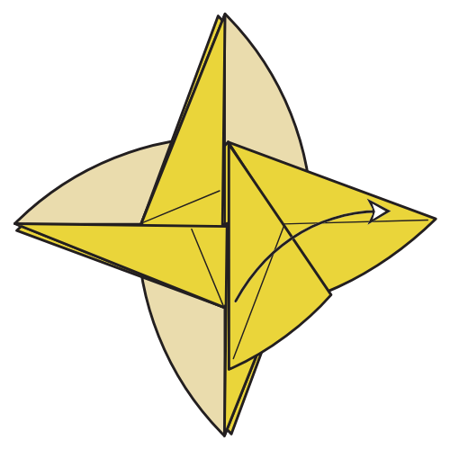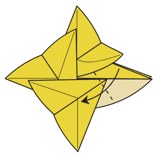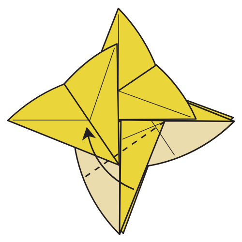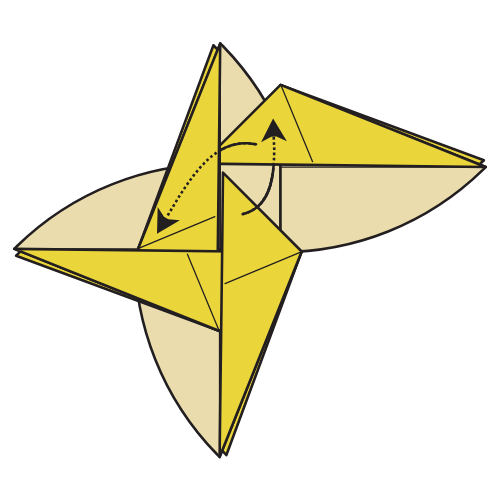 Lift the indicated flap slightly, then fold along existing creases made in Step 7.