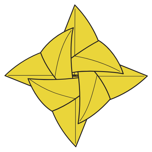 Floral Swirls is a modular origami model designed by Madhura Gupta. It’s built from just one circle of paper, divided into four units, which interlock to form this smooth, flowing, pinwheel-like flower.