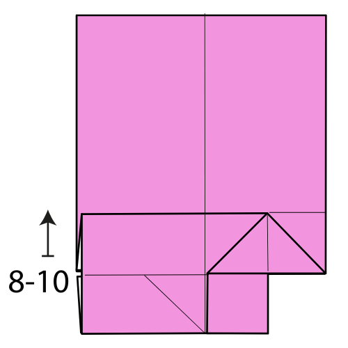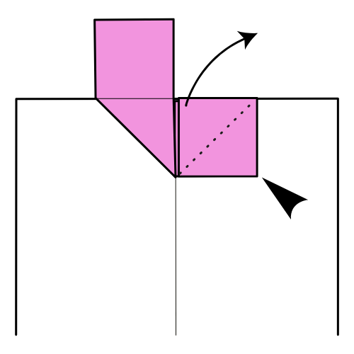 For each square area, fold the top corners inward so they meet at the center.