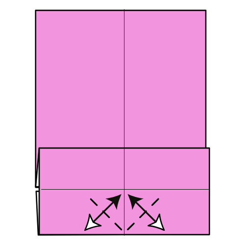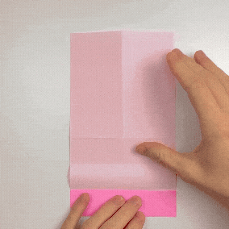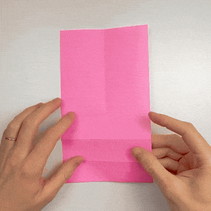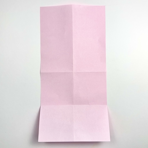 It’s folded from a 1×2 rectangle. Here, we’re using half of a square sheet, so you can make two cards from one square of origami paper. The model is quick to fold and works great as a personalized message card.
