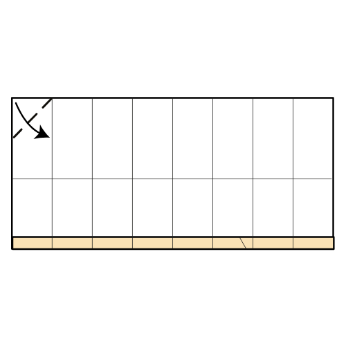 Fold the top left edge to the nearest vertical crease.