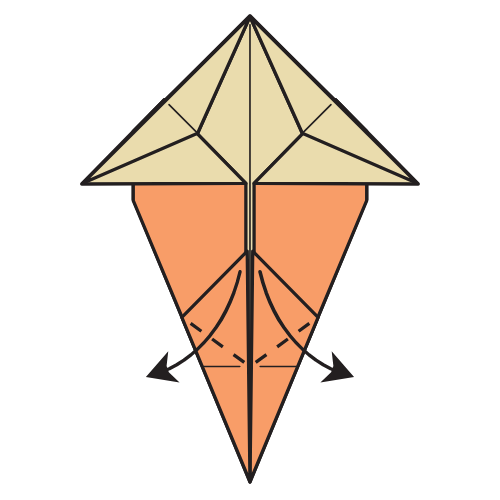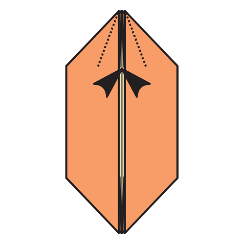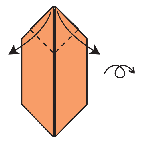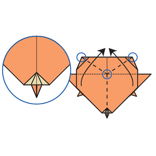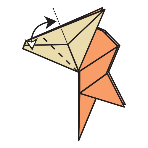 Mountain fold the top corner inward. There’s no exact reference. Repeat on the other side.