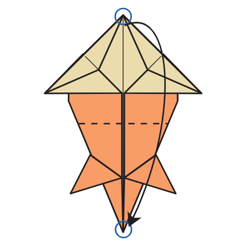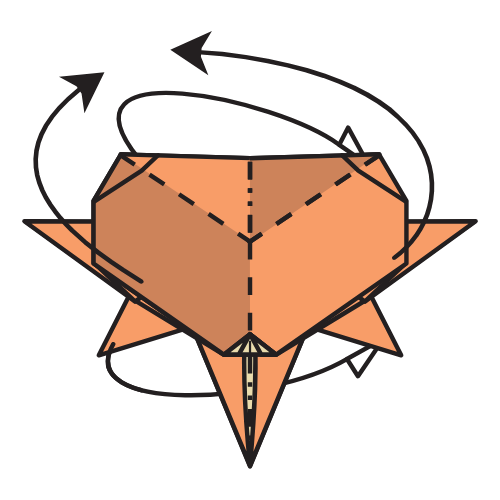 We’re about to collapse the model in half in Step 18. For now, valley fold between the circled points and start a rabbit-ear fold.