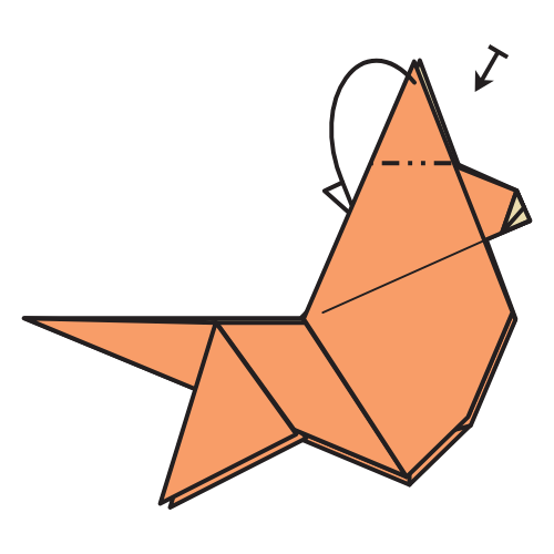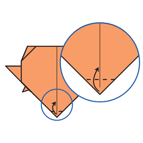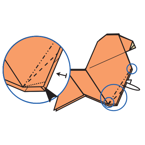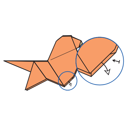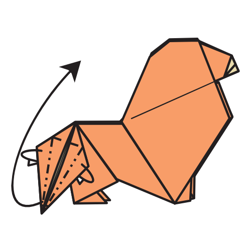 Squash fold the tail down. Align the tail’s centerline with the lion’s rear line.