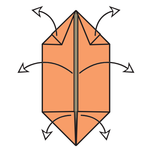 Fold the model in half. Flatten it so the near corner goes left and the far layers shift right.
