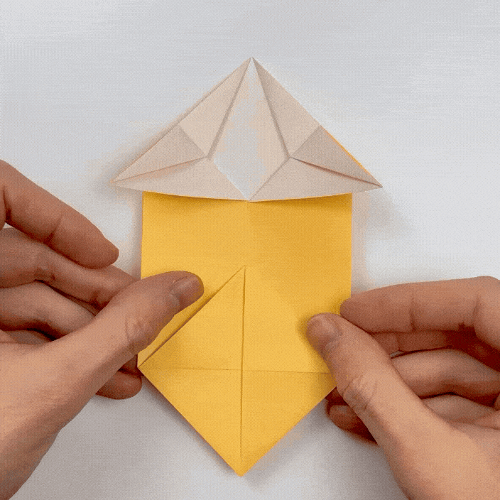 🦁 Folding tip: This is the trickiest step as pre-creasing won’t help much. Try breaking it into two motions: