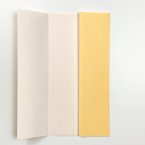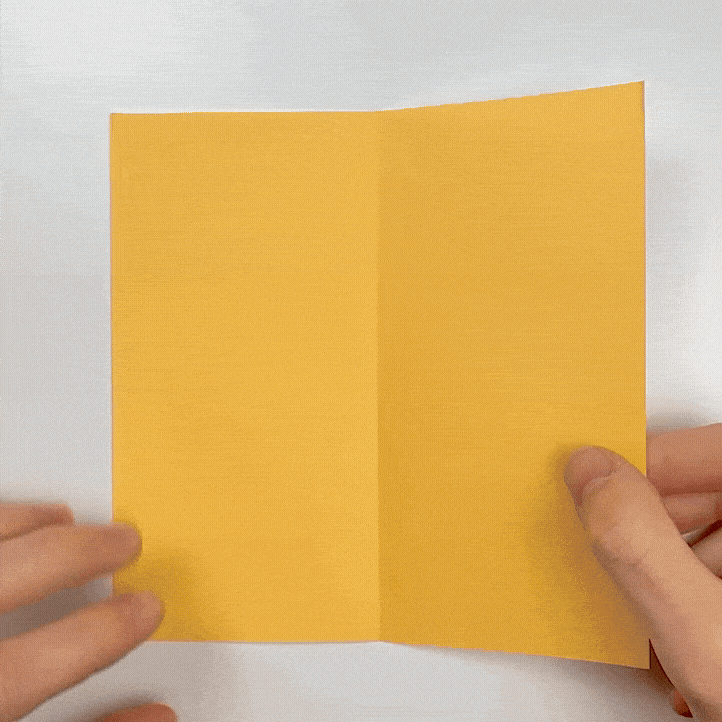 Start with the colored side of the paper facing up. Fold the paper in half vertically, then unfold.