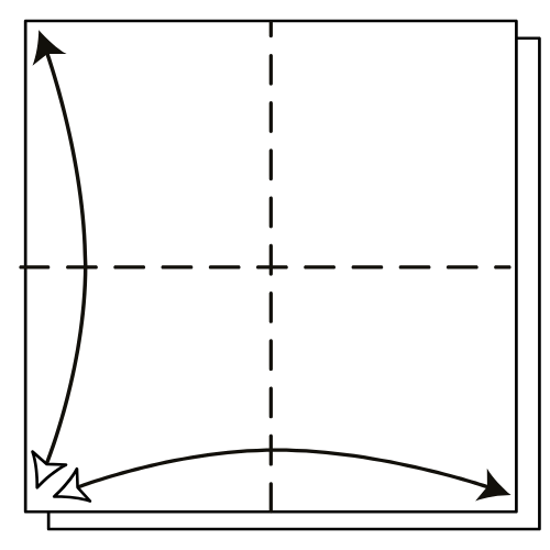First unit: Fold the top corner to the right along the diagonal of the square area. Then, fold the bottom corner to the left along diagonal of the square area.