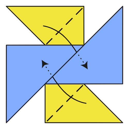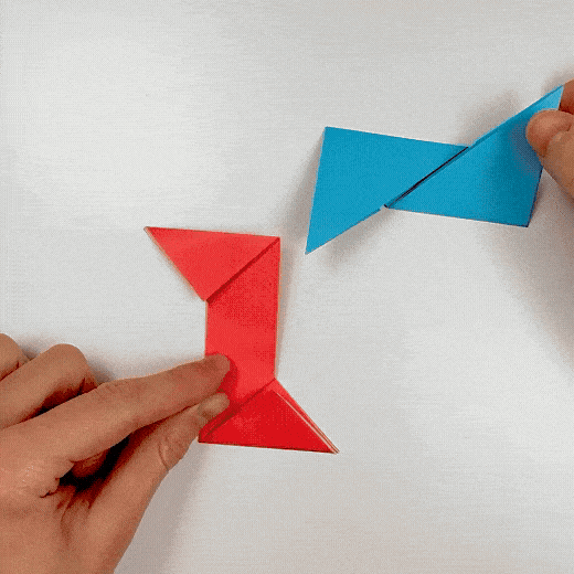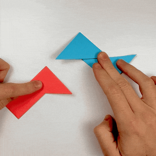 Tuck the tips of the second unit’s flaps into the pockets of the first unit. Adjust the layers, then crease well.