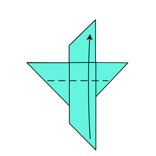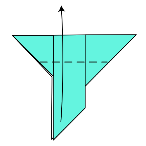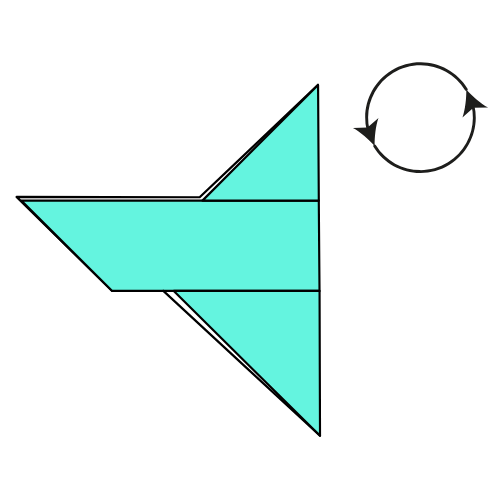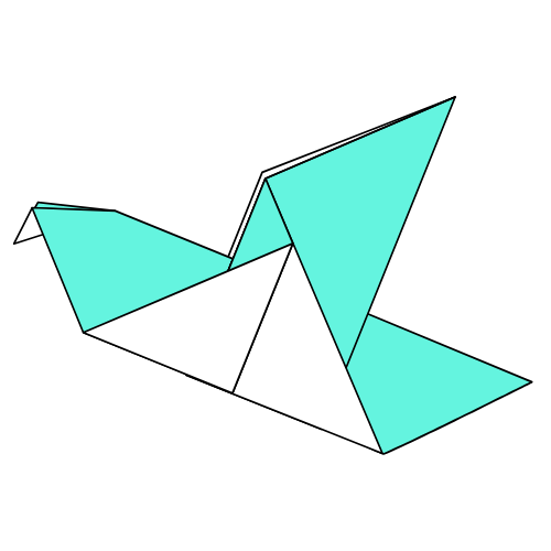 The design is geometric and stylized, with a flat body, a triangular tail, and sharply folded wings that give the impression of a bird in mid-flight.
