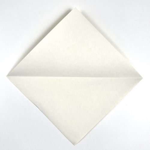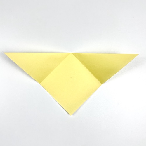Crimp fold the head over the ears by gently pushing down the top corner (the rabbit’s nose). Make sure the two reference points meet.