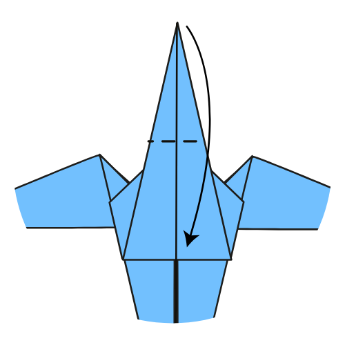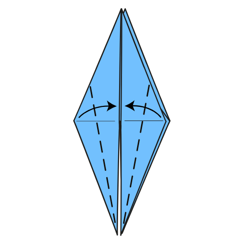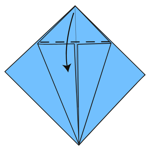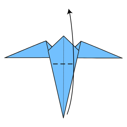 Fold the top flap up along the dotted line to form the swallow’s beak.