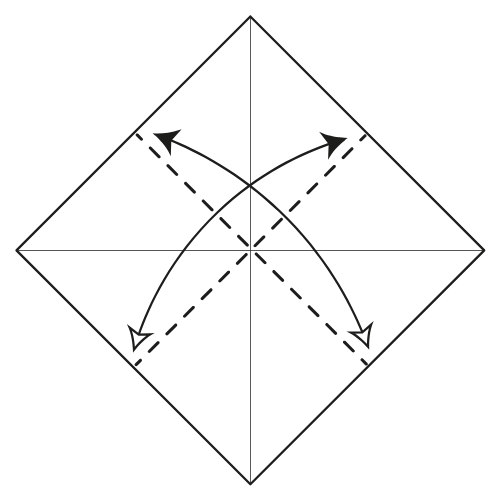 Swing the top flap to the left. Fold along the dashed line where this flap intersects with the layer underneath. Crease well and unfold. Then, repeat on the right side.
