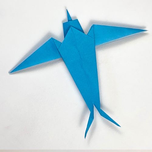 It starts from the familiar bird base, much like the classic crane, but takes a different turn at the end to create the long, tapered body and striking angular wings of a swallow.