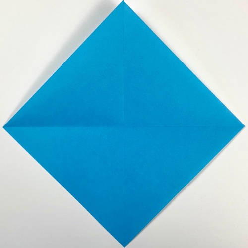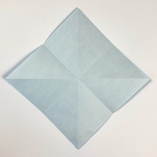 Start with the colored side facing up in a diamond position. Fold and unfold both diagonals.
