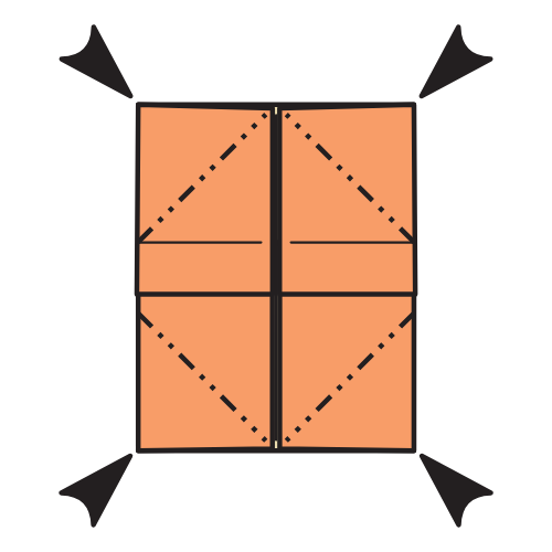 Fold all four corners in so the top and bottom edges align with the vertical centerline.