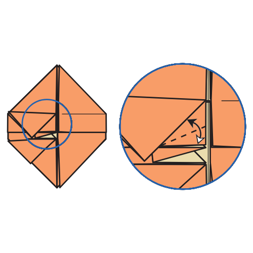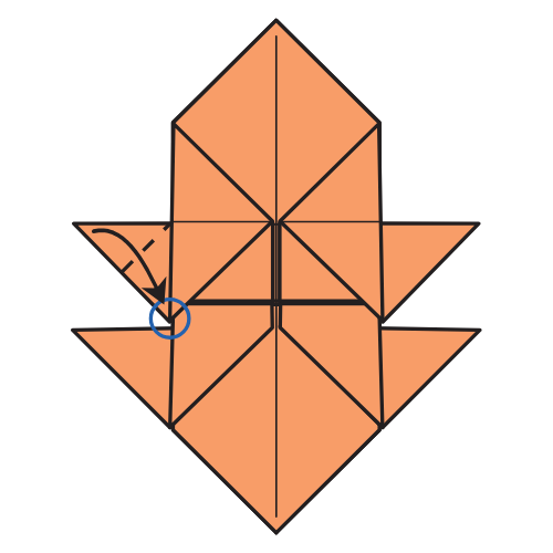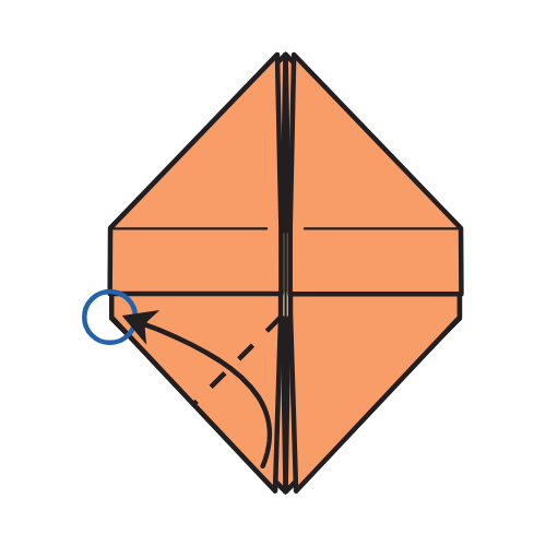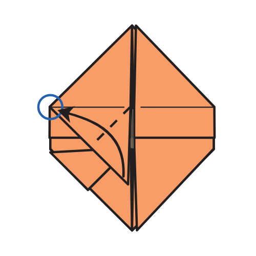 Fold the bottom left corner of the top flap to the circled point.