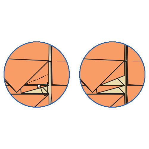 Crimp along a new valley fold between the circled points.