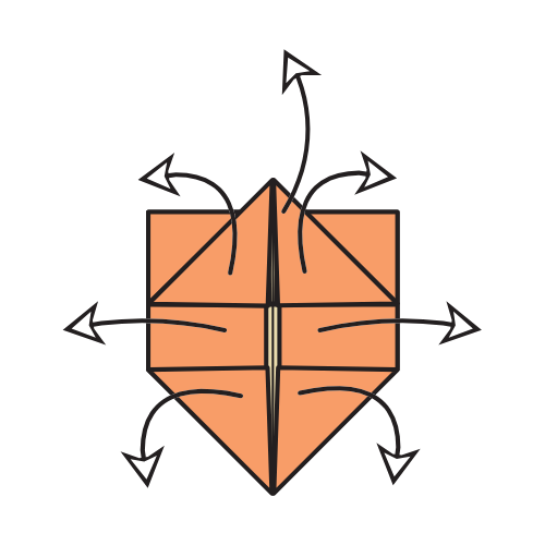 Inside reverse fold all four corners using the existing creases.