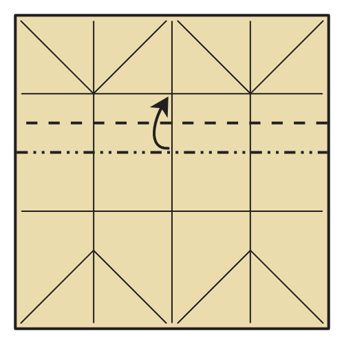 Repeat the same pleat on the next existing crease, folding it up to meet the nearest horizontal line.