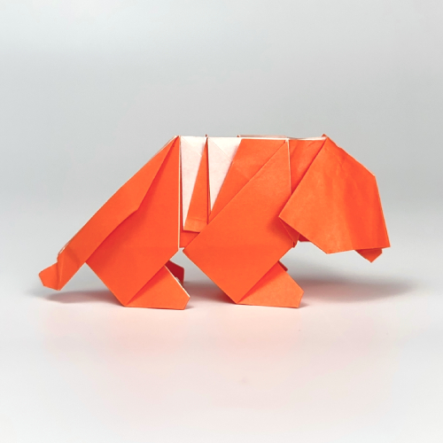 The folding sequence is low-intermediate, making it a great project for beginners with a bit of experience. The model stays on the simple side, which keeps it accessible. Yet all the key features of a tiger are here, from the rounded face to the suggestion of stripes with a color change.