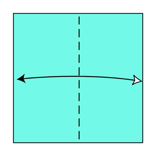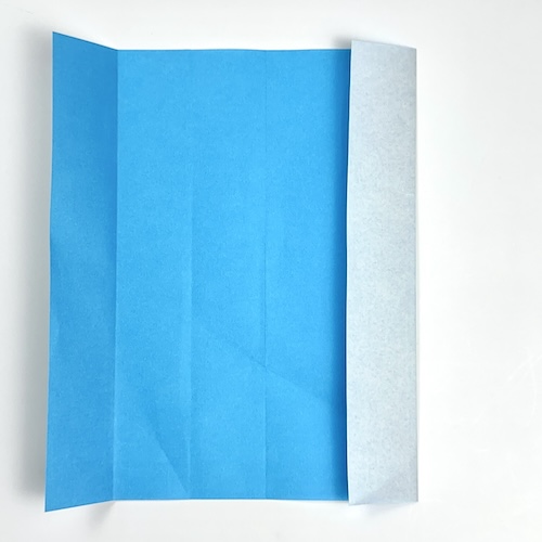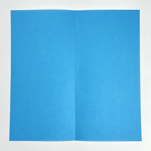 Start with the colored side of the paper facing up. Fold the paper in half vertically, then unfold.