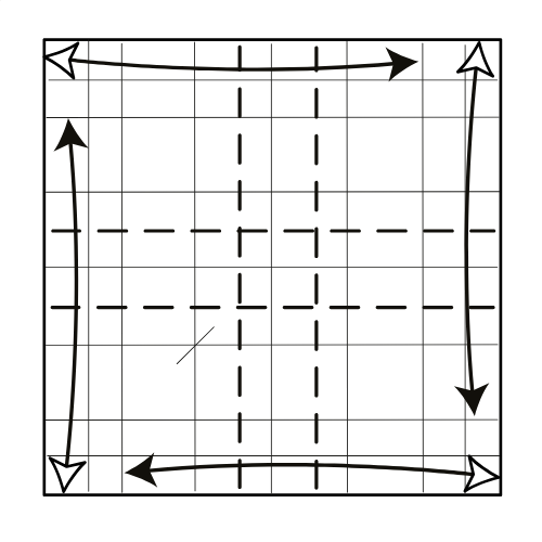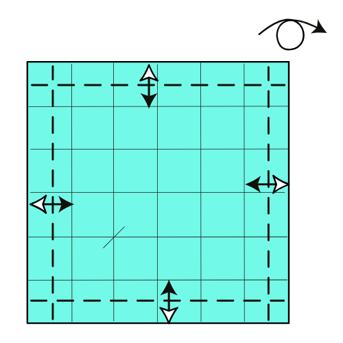 Fold and unfold the top left and right edges to the nearest horizontal crease line. Repeat on the other sides.