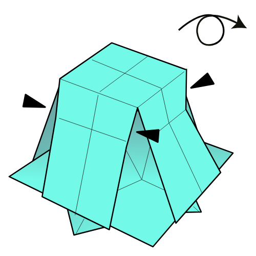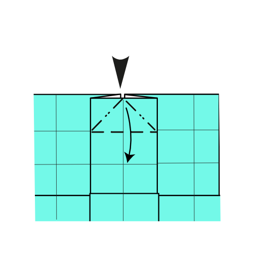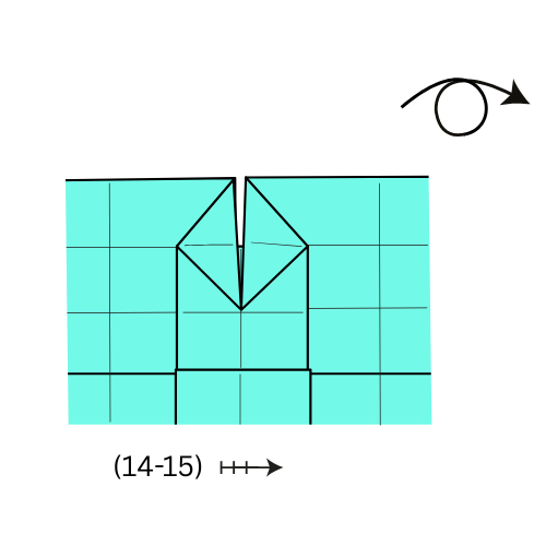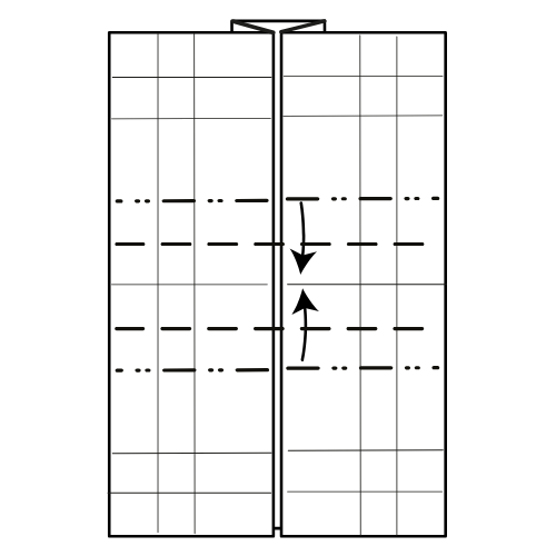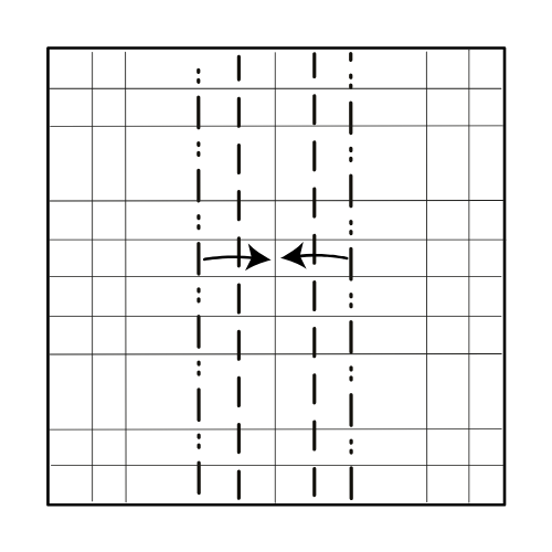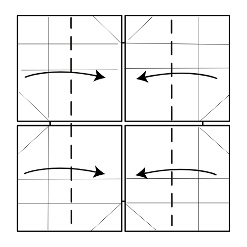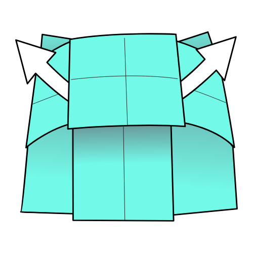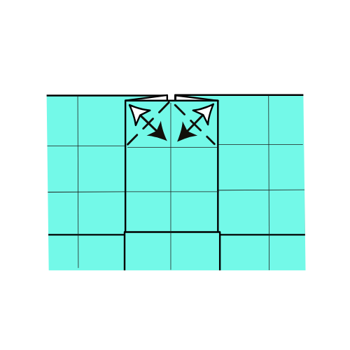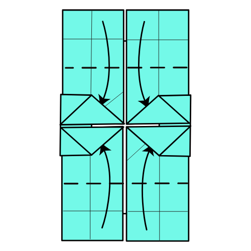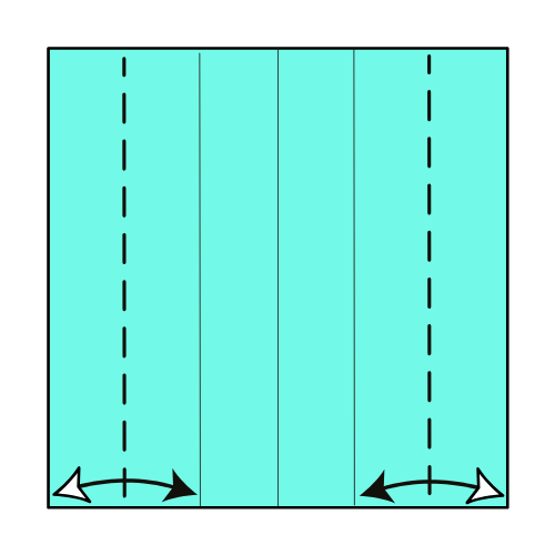 On both sides of the vertical centerline, pleat fold using the two nearest existing creases.