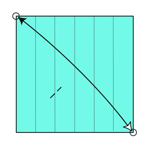 Fold the bottom right corner to meet the top left corner. Pinch where it crosses the second crease line from the left edge. Then, unfold.